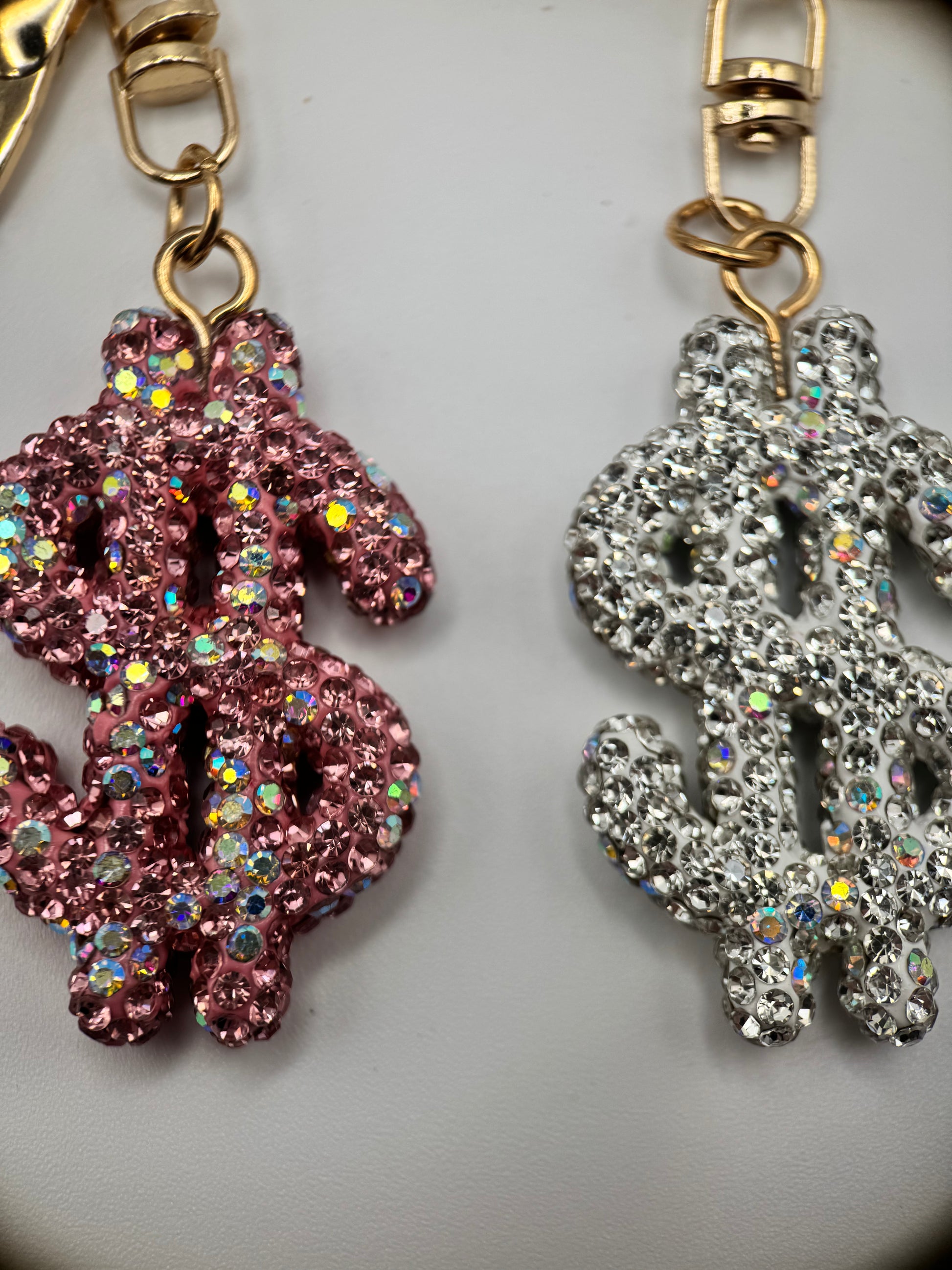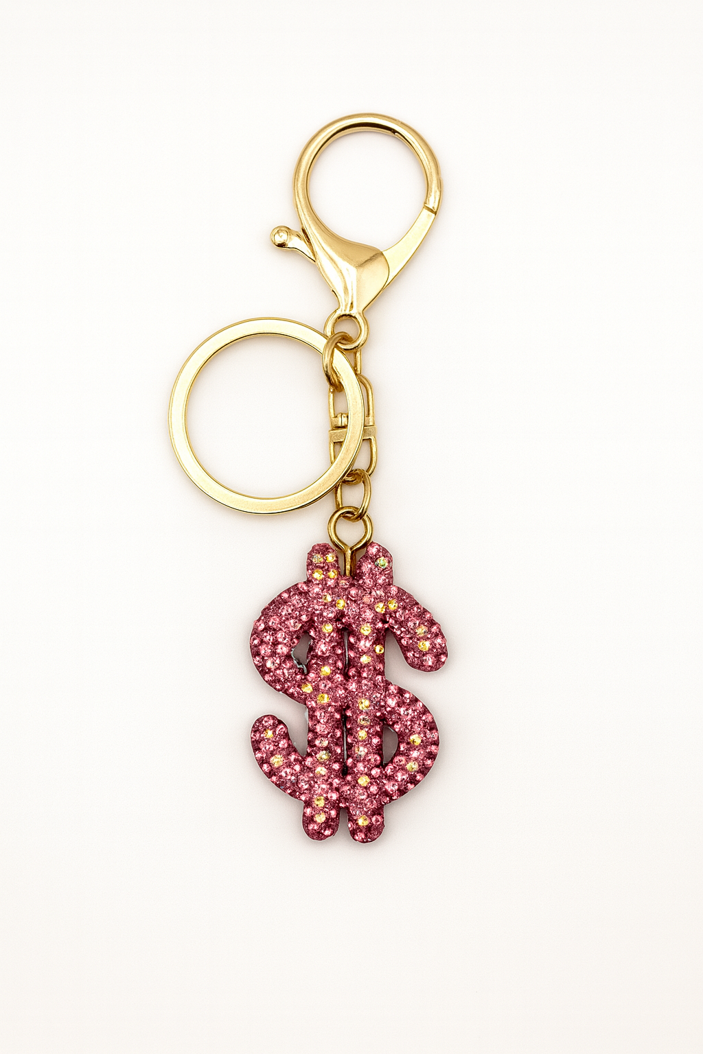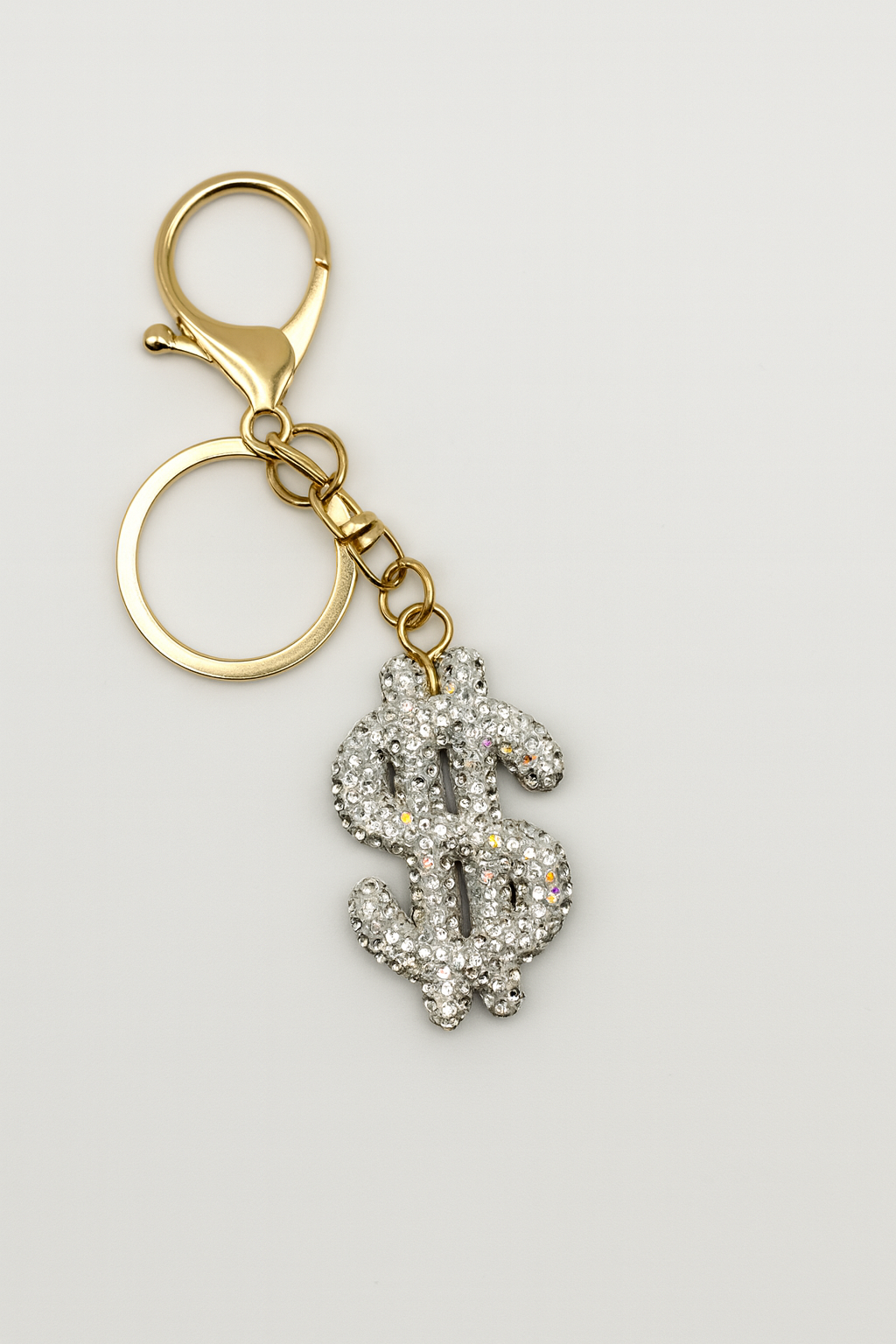 Dieser stylische Anhänger im Dollar-Design ist das perfekte Accessoire für Schlüssel, Taschen oder Handyhüllen. Mit funkelnden Strasssteinen besetzt, sorgt er für einen echten Eyecatcher und setzt ein Statement voller Luxus & Individualität.
