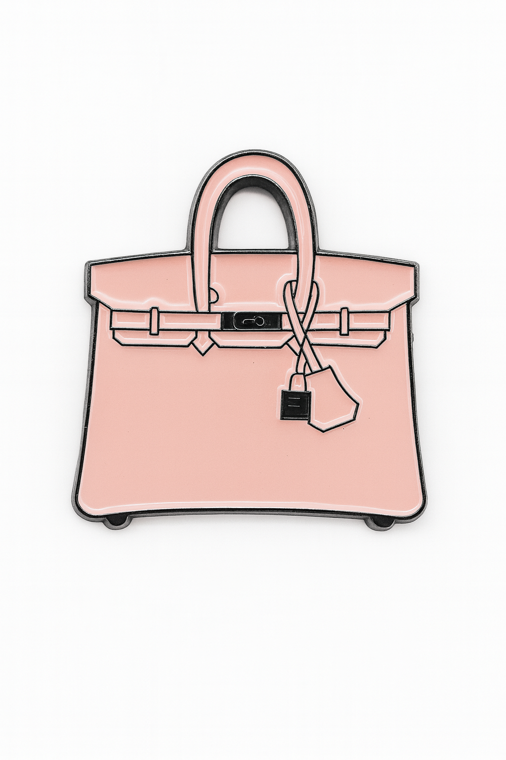 Setze ein Fashion-Statement mit dem Metall Charm „Hera“! Das elegante rosa Taschen-Design erinnert an ikonische Designer-Bags und macht deine Handyhülle, dein Tablet oder deinen Laptop sofort zum luxuriösen Hingucker.