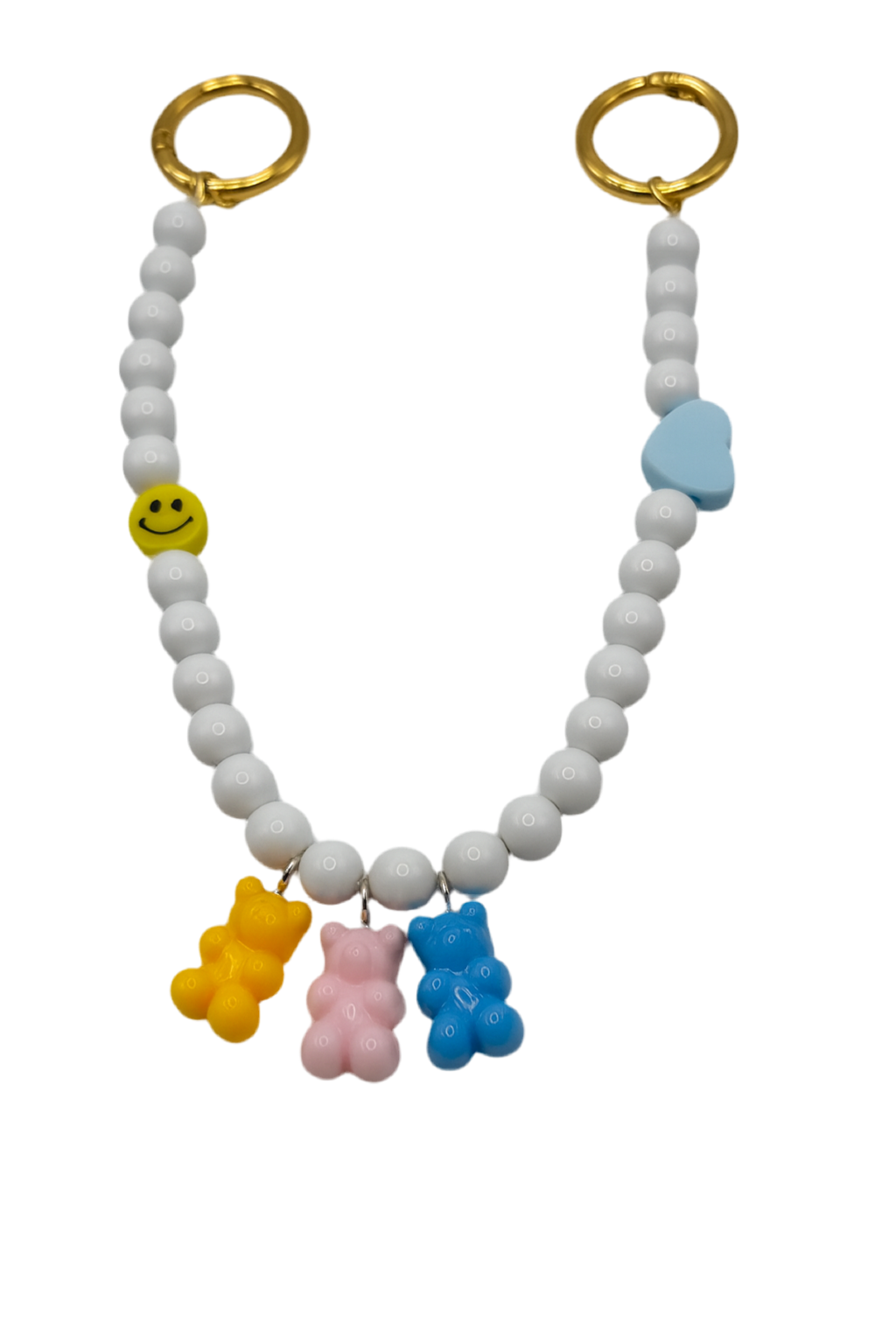 - Candy Party – Bears Edition 🐻: Weiße Perlen, Smiley, Herz-Charm & bunte Gummibären.